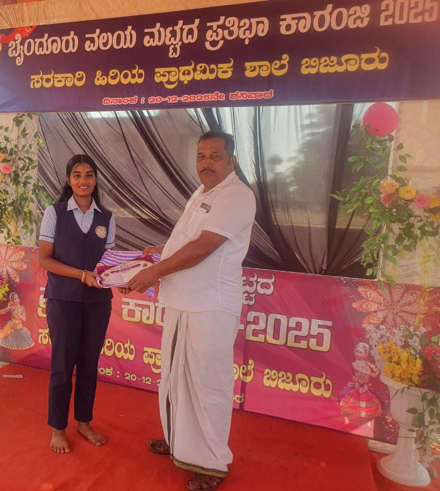 ಶಿಕ್ಷಣ ಜಯರಾಣಿ ಆಂಗ್ಲ ಮಾಧ್ಯಮ ಶಾಲೆಯ ವಿದ್ಯಾರ್ಥಿನಿಗೆ ದ್ವಿತೀಯ ಸ್ಥಾನ by Kundapur Xpress December 21, 2025 written by Kundapur Xpress December 21, 2025 159 Spread the loveತಲ್ಲೂರು : ಶನಿವಾರ ಬಿಜೂರಿನಲ್ಲಿ ನಡೆದ ಬೈಂದೂರು ವಲಯ ಮಟ್ಟದ ಪ್ರತಿಭಾ ಕಾರಂಜಿಯಲ್ಲಿ ಜಯರಾಣಿ ಆಂಗ್ಲ ಮಾಧ್ಯಮ ಶಾಲಾ ವಿದ್ಯಾರ್ಥಿನಿಯಾದ ಲತಾ ಶ್ರೀ ವಿ ಪ್ರಭು ಭರತನಾಟ್ಯ ನೃತ್ಯ ಸ್ಪರ್ಧೆಯಲ್ಲಿ ಭಾಗವಹಿಸಿ ದ್ವಿತೀಯ ಸ್ಥಾನ ಪಡೆದುಕೊಂಡಿದ್ದಾಳೆ . 0 comment 0 FacebookTwitterPinterestEmail Kundapur Xpress previous post ಶುಭ ದಿನದ ಪಂಚಾಂಗ next post ಜನನ ಮತ್ತು ಮರಣ ಇವೆರಡರ ನಡುವೆ ಇರೋದು ಜೀವನ Related Articles ಬಿ.ಬಿ. ಹೆಗ್ಡೆ ಕಾಲೇಜಿನಲ್ಲಿ ‘ಬರವಣಿಗೆ ಆರಂಭಿಸಿ’ ವಿಷಯದ ಕುರಿತು ಉಪನ್ಯಾಸ April 1, 2026 ‘ಕ್ಷೇತ್ರಕಾರ್ಯ ಮತ್ತು ಸಂದರ್ಶನ’ ಕುರಿತು ಉಪನ್ಯಾಸ ಮತ್ತು ಸಂವಾದ March 29, 2026 ಬಿ.ಬಿ. ಹೆಗ್ಡೆ ಕಾಲೇಜಿನಲ್ಲಿ “ಬರೆಹದ ಮೋದ” ವಿಷಯ ಕುರಿತು ಉಪನ್ಯಾಸ March 29, 2026 ‘ಬರವಣಿಗೆ ಕೌಶಲ’ – ಒಂದು ದಿನದ ಕಾರ್ಯಗಾರ March 27, 2026 ಬಿ.ಬಿ.ಎ ವಿದ್ಯಾರ್ಥಿಗಳಿಗೆ ಪ್ರೊಡಕ್ಷನ್ ಪ್ರೋಸೆಸ್ ಮಾಡೆಲ್ ಮೇಕಿಂಗ್ ಸ್ಪರ್ಧೆ March 27, 2026 ಡಾl ಬಿ.ಬಿ ಹೆಗ್ಡೆ ಕಾಲೇಜು : ಪ್ರಾಕ್ತನ ವಿದ್ಯಾರ್ಥಿಗಳೊಂದಿಗೆ ಸಂವಾದ March 26, 2026 ವಿಶ್ವ ಮೂತ್ರಪಿಂಡ ದಿನ ಆಚರಣೆ March 26, 2026 ಕೋಟೇಶ್ವರ ಪದವಿ ಕಾಲೇಜಿಗೆ ಅಂತರ್ ವಿಶ್ವವಿದ್ಯಾನಿಲಯ ಮಟ್ಟದ ಕಂಚಿನ ಪದಕ March 25, 2026 ಸರಕಾರಿ ಹಿರಿಯ ಪ್ರಾಥಮಿಕ ಶಾಲೆ ಹಲ್ತೂರು – ಇನ್ಸ್ಪೈರ್ ಅವಾರ್ಡ್ಗೆ... March 25, 2026 ಬಿ.ಬಿ. ಹೆಗ್ಡೆ ಕಾಲೇಜಿನಲ್ಲಿ ವಿ-ಗ್ರೋ ೨೦೨೬ ವಾಣಿಜ್ಯ ಹಬ್ಬ ಸಂಪನ್ನ March 24, 2026
