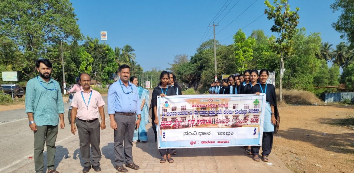 ಕೋಟೇಶ್ವರದ ವರದರಾಜ ಎಂ. ಶೆಟ್ಟಿ ಸಕಾರಿ ಪ್ರಥಮ ದರ್ಜೆ ಕಾಲೇಜಿನಲ್ಲಿ “ಸಂವಿಧಾನದ ಜಾಗೃತಿ ಜಾಥಾ” ಇದರ ಕಾರ್ಯಕ್ರಮವನ್ನು ಪ್ರಾಂಶುಪಾಲರಾದ ಡಾ. ರಾಜೇಂದ್ರ ಎಸ್. ನಾಯಕ ಇವರ ಅಧ್ಯಕ್ಷತೆಯಲ್ಲಿ ಚಾಲನೆಗೊಂಡಿತು. ಅಧ್ಯಕ್ಷತೆಯನ್ನು ಪ್ರಾಂಶುಪಾಲರು ಡಾ. ರಾಜೇಂದ್ರ ಎಸ್. ನಾಯಕ ವಹಿಸಿ ಮಾತನಾಡಿ ಭಾರತ ಸಂವಿಧಾನದ ಮೂಲತತ್ವವು ಅದರ ಪೀಠಿಕೆಯಾಗಿದೆ. ಭಾರತವನ್ನು ಸಾರ್ವಭೌಮ, ಸಮಾಜವಾದಿ ಜಾತ್ಯಾತೀತ ಹಾಗೂ ಪ್ರಜಾಸತಾತ್ಮಕ ಗಣರಾಜ್ಯದ ಮೌಲ್ಯಗಳಿಗೆ ಅನುಸಾರವಾಗಿ ರೂಪುಗೊಂಡಿದ್ದು, ಇದು ಜನರ ಸಾಮಾಜಿಕ, ರಾಜಕೀಯ ಮತ್ತು ಆರ್ಥಿಕ ನ್ಯಾಯವನ್ನು ಖಚಿತಪಡಿಸುತ್ತದೆ ಮತ್ತು ಸಂವಿಧಾನದ ದಾರಿಯಲ್ಲಿ ಪ್ರತಿಯೊಬ್ಬ ವ್ಯಕ್ತಿಗೂ ನ್ಯಾಯ, ಸ್ವಾತಂತ್ರö್ಯ, ಘನತೆ, ಐಕ್ಯತಾ ಪ್ರಜ್ಞೆ ಮತ್ತು ಸಮಾನತೆಯ ವಾತಾವರಣವನ್ನು ಕಲ್ಪಿಸುವುದು ಸರ್ಕಾರದ ಉದ್ದೇಶ ಹಾಗೂ ನಮ್ಮೆಲ್ಲರ ಕರ್ತವ್ಯವಾಗಿದೆ ಎಂದು ನುಡಿದರು.