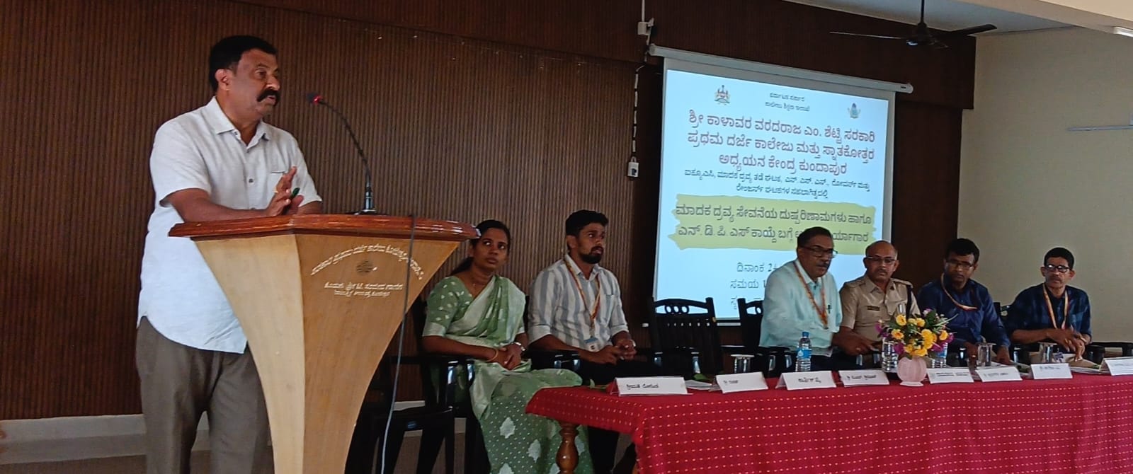 ಕುಂದಾಪುರ ಉಪವಿಭಾಗದ ಅಬಕಾರಿ ಉಪಧೀಕ್ಷರಾದ ಪ್ರಭುಗೌಡ ಪಾಟೀಲ ಪ್ರಾತ್ಯಕ್ಷಿಕೆಯೊಂದಿಗೆ ಎನ್.ಡಿ.ಪಿ.ಎಸ್. ಕಾಯ್ದೆಯ ಅರಿವು ಕಾರ್ಯಾಗಾರವನ್ನು ನಡೆಸಿಕೊಟ್ಟರು. ಕಾರ್ಯಕ್ರಮದ ಅಧ್ಯಕ್ಷತೆಯನ್ನು ವಹಿಸಿದ ಕಾಲೇಜಿನ ಪ್ರಾಂಶುಪಾಲ ರಾಮರಾಯ ಆಚಾರ್ಯ ಬದಲಾಗುತ್ತಿರುವ ಕಾಲ ಘಟ್ಟದಲ್ಲಿ ದುಶ್ಚಟಗಳಿಂದ ದೂರವಿದ್ದು ಆದರ್ಶ ವಿದ್ಯಾರ್ಥಿಗಳಾಗಿ ಭವಿಷ್ಯದಲ್ಲಿ ಉತ್ತಮ ನಾಗರಿಕರಾಗಬೇಕೆಂದು ಕಿವಿಮಾತು ಹೇಳಿದರು.