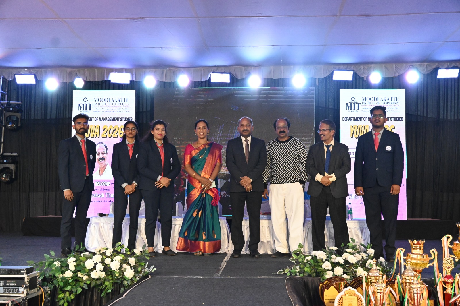 ಮೂಡ್ಲಕಟ್ಟೆ : ಇನ್ಸ್ಟಿಟ್ಯೂಟ್ ಆಫ್ ಟೆಕ್ನಾಲಜಿ ಕುಂದಾಪುರ ಇಲ್ಲಿನ ಎಂಬಿಎ ವಿಭಾಗದ ವತಿಯಿಂದ ದಿನಾಂಕ 28 ಫೆಬ್ರವರಿ 2026ರಂದು ಅಂತರ್ ಕಾಲೇಜು ಕಲ್ಚರಲ್ ಮತ್ತು ಮ್ಯಾನೇಜ್ಮೆಂಟ್ ಫೆಸ್ಟ್ ” ಯುವ 2026 ” ಅತ್ಯಂತ ಯಶಸ್ವಿಯಾಗಿ ನಡೆಯಿತು. ಈ ಕಾರ್ಯಕ್ರಮಕ್ಕೆ ಮುಖ್ಯ ಅತಿಥಿಗಳಾಗಿ ಪ್ರಖ್ಯಾತ ಕಲಾವಿದರಾದ ಶ್ರೀ ಪ್ರಕಾಶ್ ತುಮ್ಮಿನಾಡು ಇವರು ಆಗಮಿಸಿ ಇಷ್ಟು ದೊಡ್ಡ ಕಾರ್ಯಕ್ರಮದಲ್ಲಿ ಭಾಗವಹಿಸಲು ನನಗೆ ಅವಕಾಶ ಸಿಕ್ಕಿದ್ದು ತುಂಬಾ ಸಂತೋಷ ನೀಡಿದೆ ಎಂದು ಹೇಳಿದರು. ಕಾರ್ಯಕ್ರಮದಲ್ಲಿ ಎಂ ಐ ಟಿ ಕೆ ಪ್ರಾಂಶುಪಾಲರಾದ ಡಾ. ರಾಮಕೃಷ್ಣ ಹೆಗಡೆ ಇವರು ಉಪಸ್ಥಿತರಿದ್ದು ಇದು ಎಂಬಿಎ ಡಿಪಾರ್ಟ್ಮೆಂಟ್ ನಡೆಸಿಕೊಂಡು ಬರುತ್ತಿರುವ ಸತತ ಐದನೇ ಯಶಸ್ವಿ ಯುವ ಫೆಸ್ಟ್ ಎಂದು ಪ್ರಶಂಶಿಸಿದರು. ಕಾರ್ಯಕ್ರಮದ ಅಧ್ಯಕ್ಷತೆ ವಹಿಸಿದ್ದ ಐ ಎಂ ಜೆ ವಿದ್ಯಾ ಸಂಸ್ಥೆಗಳ ಡೈರೆಕ್ಟರ್ ಅಕಾಡೆಮಿಕ್ಸ್ ಆದ ಡಾ. ಎಸ್ ಎನ್ ಭಟ್ ಮಾತನಾಡಿ ಇಂಥ ಅವಕಾಶಗಳು ಸಿಗುವುದು ವಿರಳ, ಸಿಕ್ಕಿದ ಅವಕಾಶವನ್ನು ಸದುಪಯೋಗ ಮಾಡಿಕೊಳ್ಳುವಂತೆ ವಿದ್ಯಾರ್ಥಿಗಳಿಗೆ ತಿಳಿಸಿದರು.