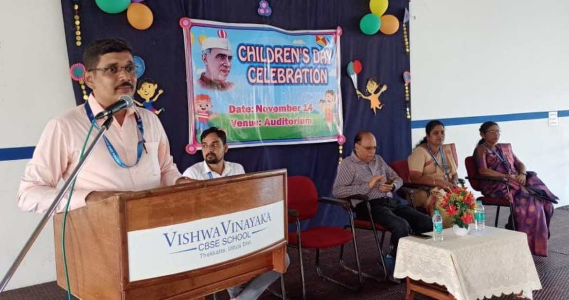 ತೆಕ್ಕಟ್ಟೆ : ಮಕ್ಕಳ ದಿನಾಚರಣೆಯ ಪ್ರಯುಕ್ತ ವಿಶ್ವವಿನಾಯಕ ಸಿ. ಬಿ. ಎಸ್. ಇ. ಶಾಲೆಯಲ್ಲಿ ವಿವಿಧ ಕರ್ಯಕ್ರಮಗಳನ್ನು ಹಮ್ಮಿಕೊಳ್ಳಲಾಗಿತ್ತು. ಸಂಸ್ಥೆಯ ಮ್ಯಾನೇಜಿಂಗ್ ಡೈರೆಕ್ಟರ್ ಎಮ್. ಪ್ರಭಾಕರ ಶೆಟ್ಟಿಯವರು ಕರ್ಯಕ್ರಮದ ಅಧ್ಯಕ್ಷತೆ ವಹಿಸಿ ನೆಹರೂರವರ ಭಾವಚಿತ್ರಕ್ಕೆ ಪುಪ್ಷ ನಮನಗಳನ್ನು ಸಲ್ಲಿಸಿ ಮಕ್ಕಳ ದಿನಾಚರಣೆಯ ಮಹತ್ವವನ್ನು ತಿಳಿ ಹೇಳಿದರು. ರಾಷ್ಟçದ ಪ್ರಥಮ ಪ್ರಧಾನ ಮಂತ್ರಿ ನೆಹರೂರವರ ಆದರ್ಶಗಳನ್ನು ಜೀವನದಲ್ಲಿ ಅಳವಡಿಸಿ ಯಶಸ್ಸನ್ನು ಗಳಿಸಬೇಕೆಂದು ಮಕ್ಕಳಿಗೆ ಕರೆ ನೀಡಿದರು. ಇಂದಿನ ವಿದ್ಯಾರ್ಥಿಗಳೇ ಮುಂದಿನ ಪ್ರಜೆಗಳು, ರಾಷ್ಟ್ರ ನಿರ್ಮಾಣ ಯುವ ಪೀಳಿಗೆಯ ಕೈಯಲ್ಲಿದೆ ಎಂದು ತಿಳಿಸಿದರು.