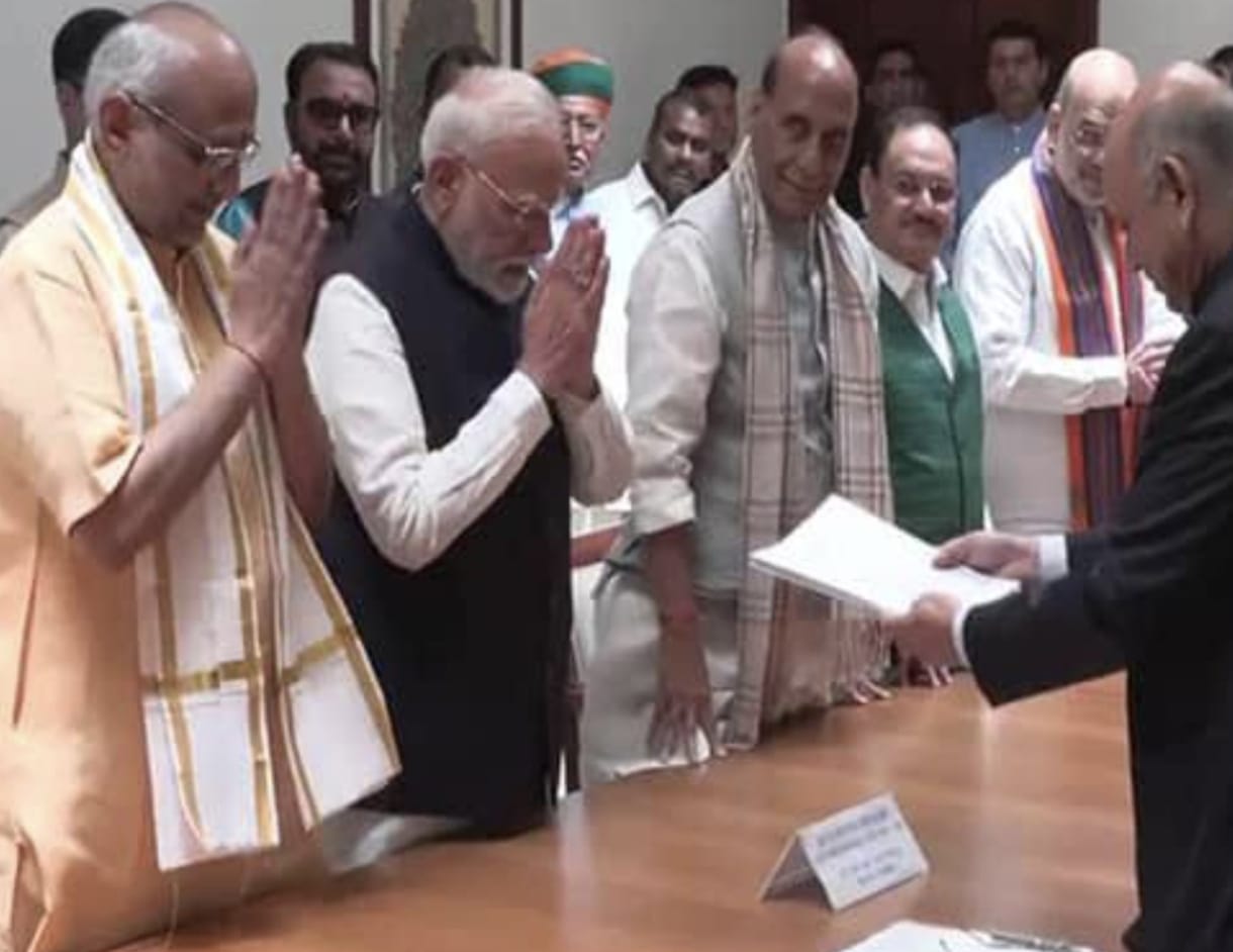 ನಾಮಪತ್ರವನ್ನು ಪರಿಶೀಲಿಸಿದ ಚುನಾವಣಾಧಿಕಾರಿ, ರಾಧಾಕೃಷ್ಣನ್ ಅವರಿಂದ ಸಹಿ ಪಡೆದುಕೊಂಡರು. ಆ ಬಳಿಕ ಮೋದಿಯವರಿಗೆ ಸ್ವೀಕೃತಿ ಪತ್ರವನ್ನು ನೀಡಿದರು.