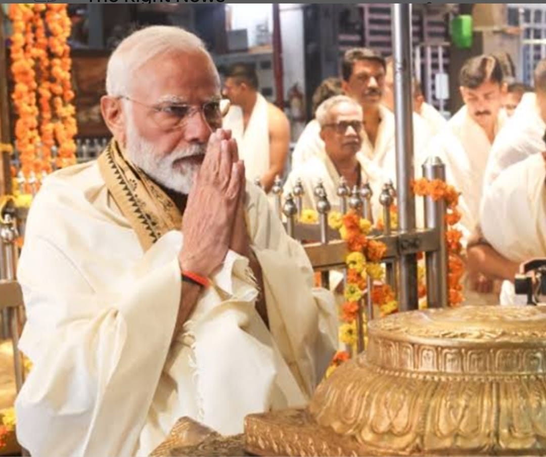 ಬಿಳಿ ಪಂಚೆ, ಅಂಗಿ ಮತ್ತು ಅಂಗವಸ್ತ್ರವನ್ನು ತೊಟ್ಟು ಸಾಂಪ್ರದಾಯಿಕ ಪೋಷಾಕಿನಲ್ಲಿ ಬಂದ ಪ್ರಧಾನಿಯವರನ್ನು ದೇವಸ್ಥಾನದ ಅರ್ಚಕರು ಧಾರ್ಮಿಕ ರೀತ್ಯಾ ಸ್ವಾಗತಿಸಿದರು. ಆ ಬಳಿಕ ಪ್ರಧಾನಿ ದೇವರ ದರ್ಶನ ಪಡೆದು ಪ್ರಾರ್ಥನೆ ಸಲ್ಲಿಸಿದರು.