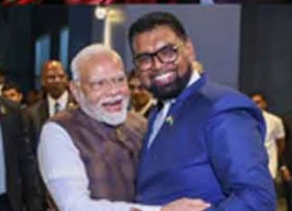 ಗಯಾನಾಗೆ ಭೇಟಿ ನೀಡಿ ಅಲ್ಲಿನ ಅಧ್ಯಕ್ಷ ಇರ್ಫಾನ್ ಅಲಿ ಜತೆ ದ್ವಿಪಕ್ಷೀಯ ಮಾತುಕತೆ ನಡೆಸಿದ ಮೋದಿ, ಉಭಯ ದೇಶಗಳ ನಡುವೆ ಔಷಧ, ಇಂಧನ, ಡಿಜಿಟಲ್ ಪೇಮೆಂಟ್ ಸೇರಿದಂತೆ 10 ಒಪ್ಪಂದಕ್ಕೆ ಸಹಿ ಹಾಕಿದರು. ಅಲ್ಲದೆ, 2ನೇ ಭಾರತ- ಕ್ಯಾರಿಕೋಮ್ ಶೃಂಗಸಭೆಯಲ್ಲಿ ನಿಮಿತ್ತ ಮಾತನಾಡಿದರು.