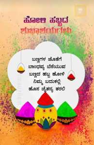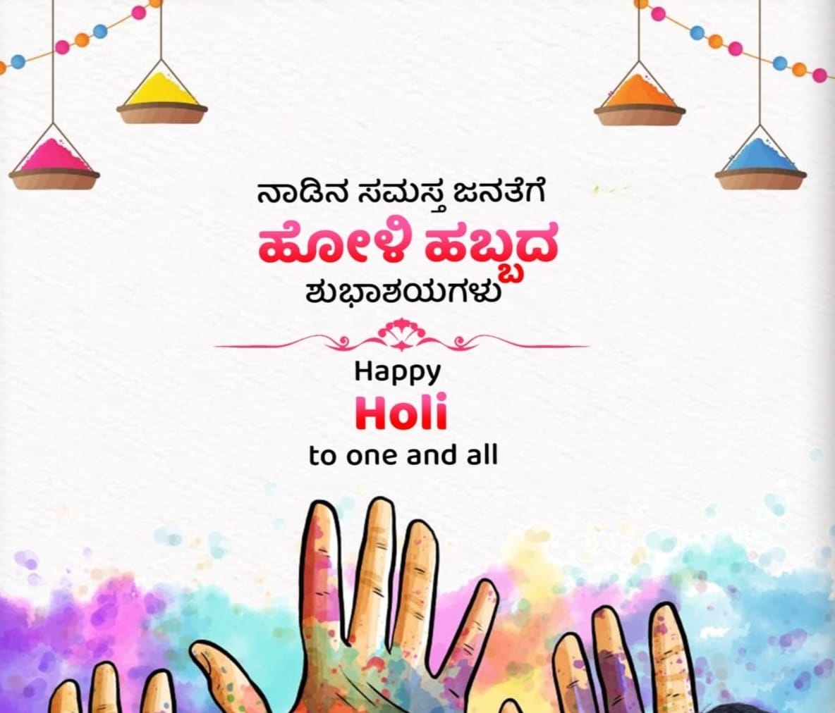 ಜೀವನವು ಎಂದೆಂದಿಗೂ ವರ್ಣಮಯವಾಗಿರಲಿ, ಬಣ್ಣದ ವರ್ಣಗಳು ಜೀವನದಲ್ಲಿ ಸೃಜನಶೀಲತೆ ಮತ್ತು ಹೊಸತನವನ್ನು ತರಲಿ. ಈ ಬಣ್ಣ ನಿಮ್ಮ ಬದುಕಿನಲ್ಲಿ ಎಂದೆಂದೂ ಮಾಸದಿರಲಿ ಎಂದು ಆಶಿಸುತ್ತ, ನಿಮಗೆಲ್ಲರಿಗೂ ಹೋಳಿ ಹಬ್ಬದ ಶುಭಾಶಯಗಳು
