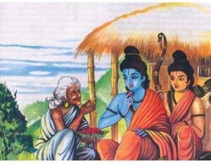 ರಾಮ ನಾಮವನ್ನು ಜಪಿಸುತ್ತಾ ರಾಮ ಬಂದಾಗ ಆತನಿಗೆ ಕೊಡಲು ಸಿಹಿಯಾದ ಹಣ್ಣುಗಳನ್ನು ಸಂಗ್ರಹಿಸುತ್ತಾ ಕಾಲವನ್ನು ಕಳೆಯುತ್ತಿರುತ್ತಾಳೆ . ರಾಮ ಬರುವ ಹಾದಿಯಲ್ಲಿ ಕಲ್ಲು ಮುಳ್ಳು ಇರಬಾರದೆಂದು ಹಾದಿಯನ್ನು ಸ್ವಚ್ಛಗೊಳಿಸಿ ಮನಸ್ಸಿನಲ್ಲಿ ಪೂಜ್ಯ ಭಾವದಿಂದ ರಾಮ ನಾಮ ಜಪಿಸುತ್ತ ಅನುದಿನವು ದಿನಚರಿ ರಾಮನ ನೆನಪಲ್ಲಿ ನಡೆಸುತ್ತಿರುತ್ತಾಳೆ. ಕಾಲಕ್ರಮೇಣ ರಾಮ ಮತ್ತು ಲಕ್ಷ್ಮಣ ಸೀತಾನ್ವೇಷಣೆಗಾಗಿ ಶಬರಿಯ ಆಶ್ರಮದ ದಾರಿಯಲ್ಲಿ ಬಂದಾಗ ಶಬರಿಗೆ ಆಗುವ ಆನಂದ ಅಷ್ಟಿಷ್ಟಲ್ಲ. ತನ್ನ ಸ್ವಾಮಿಯ ಪಾದಪೂಜೆ ಮಾಡಿ ತಾನು ಸಂಗ್ರಹಿಸಿದ ಫಲಗಳನ್ನು ರಾಮನಿಗೆ ಅರ್ಪಿಸುವ ಮುನ್ನ ಒಂದೊಂದೇ ಫಲಗಳನ್ನು ತಾನೇ ಸವಿದು ಕಹಿಯಾದ ಫಲಗಳನ್ನು ಹೊರಗೆ ಎಸೆದು ಸಿಹಿಯಾದ ಫಲಗಳನ್ನು ರಾಮನಿಗೆ ಅರ್ಪಿಸುತ್ತಾಳೆ