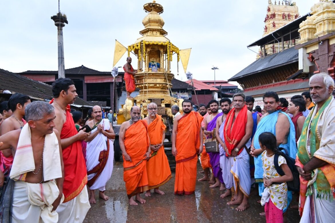 ಉಡುಪಿ : 37 ವರ್ಷಗಳ ಬಳಿಕ ಉಡುಪಿಯಲ್ಲಿ ತಮ್ಮ45 ನೇ ಚಾತುರ್ಮಾಸ್ಯ ವ್ರತವನ್ನು ಅತ್ಯಂತ ಅಭೂತ ಪೂರ್ವವೆಂಬಂತೆ ನಡೆಸಿ ಸಂಪನ್ನಗೊಳಿಸುತ್ತಿರುವ ಹಾಗೂ 70 ನೇ ಜನ್ಮ ವರ್ಧಂತಿಯನ್ನು ಕಾಣುತ್ತಿರುವ ಶ್ರೀ ಭಂಡಾರಕೇರಿ ಮಠಾಧೀಶರಾದ ಶ್ರೀ ವಿದ್ಯೇಶತೀರ್ಥ ಶ್ರೀಪಾದರಿಗೆ ಪರ್ಯಾಯ ಶ್ರೀ ಪುತ್ತಿಗೆ ಮಠ ಶ್ರೀ ಕೃಷ್ಣಮಠದ ವತಿಯಿಂದ ಶ್ರೀ ಸುಗುಣೇಂದ್ರತೀರ್ಥ ಶ್ರೀಪಾದರ ದಿವ್ಯ ನೇತೃತ್ವದಲ್ಲಿ ಅಭಿನಂದನೋತ್ಸವವು ಅತ್ಯಂತ ವೈಭವದಿಂದ ಯಶಸ್ವಿಯಾಗಿ ನೆರವೇರಿತು.