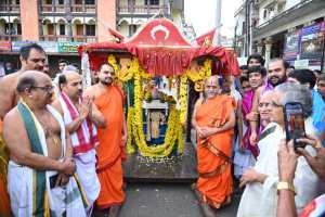 ಇಂದು ಆ.4ರಂದು ಅದಮಾರು ಮಠದ ಹಿರಿಯ ವಿಶ್ವಪ್ರಿಯ ತೀರ್ಥ ಶ್ರೀಪಾದರ ಹಸ್ತಗಳಿಂದ, ಸುಗುಣೇಂದ್ರ ತೀರ್ಥ ಶ್ರೀಪಾದರ ಉಪಸ್ಥಿತಿಯಲ್ಲಿ ಶ್ರೀ ಕೃಷ್ಣ ದೇವರಿಗೆ ಮುತ್ತಿನ ಕವಚವನ್ನು ಸಮರ್ಪಿಸಲಿದ್ದಾರೆ.