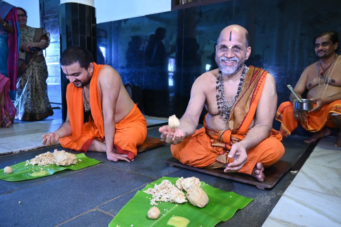 ಉಡುಪಿ : ಕೃಷ್ಣ ಜನ್ಮಾಷ್ಟಮಿಯಂದು ಬಾಲಕೃಷ್ಣನಿಗೆ ಎಳ್ಳು, ಕಡಲೆ, ಹೆಸರು ಇತ್ಯಾದಿಗಳಿಂದ ತಯಾರಿಸಿದ ಲಡ್ಡುಗಳನ್ನು ಸಮರ್ಪಿಸಲಾಗುತ್ತದೆ. ಈ ಲಡ್ಡುಗಳನ್ನು ಸ್ವತಃ ಪರ್ಯಾಯ ಶ್ರೀಗಳೇ ಕೈಯಾರೆ ತಯಾರಿಸಿ, ಲಡ್ಡು ತಯಾರಿಸುವ ಸಂಪ್ರದಾಯಕ್ಕೆ ಚಾಲನೆ ನೀಡಿದರು. 108 ಬಗೆಯ ಲಡ್ಡುಗಳನ್ನು ತಯಾರಿಸುವ ಲಡ್ಡೋತ್ಸವವೂ ಕೃಷ್ಣಮಠದಲ್ಲಿ ನಡೆದಿದ್ದು, ಕೃಷ್ಣನ ಸಮರ್ಪಣೆಗೆ 1 ಲಕ್ಷ ವಿವಿಧ ಬಗೆಯ ಲಡ್ಡು ಮತ್ತು 1 ಲಕ್ಷ ಚಕ್ಕುಲಿಗಳನ್ನು ತಯಾರಿಸಲಾಗಿದೆ. ಅವುಗಳನ್ನು ಕೃಷ್ಣನಿಗೆ ನೈವೇದ್ಯದ ನಂತರ ಇಂದು ಮಂಗಳವಾರ ಭಕ್ತರಿಗೆ ವಿತರಿಸಲಾಗುತ್ತದೆ