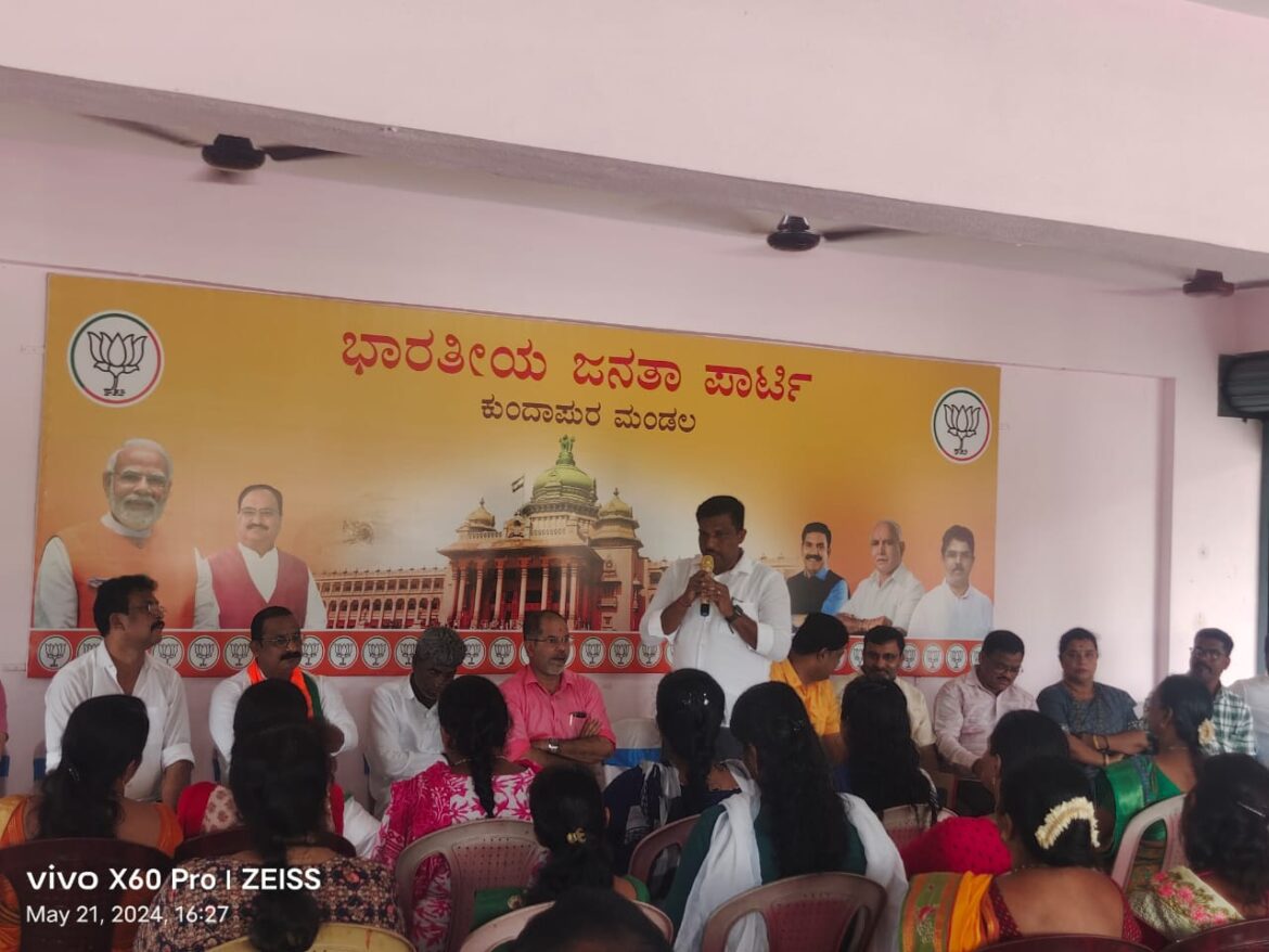 ಸಭೆಯಲ್ಲಿ ಬಿಜೆಪಿ ಜಿಲ್ಲಾಧ್ಯಕ್ಷರಾದ ಕಿಶೋರ್ ಕುಮಾರ್ ಕುಂದಾಪುರ, ಮಂಗಳೂರು ವಿಭಾಗ ಪ್ರಭಾರಿ ಉದಯ ಕುಮಾರ್ ಶೆಟ್ಟಿ ಕಿದಿಯೂರು,, ಜಿಲ್ಲಾ ಬಿಜೆಪಿ ಉಪಾಧ್ಯಕ್ಷರಾದ ಸದಾನಂದ ಉಪ್ಪಿನಕುದ್ರು, ಕುಂದಾಪುರ ಮಂಡಲದ ಪ್ರಧಾನ ಕಾರ್ಯದರ್ಶಿಗಳಾದ ಸತೀಶ್ ಪೂಜಾರಿ ವಕ್ವಾಡಿ,, ಸುಧೀರ್.ಕೆ.ಎಸ್,,ರಾಜ್ಯ ಮಹಿಳಾ ಮೋರ್ಚಾ ಪ್ರಧಾನ ಕಾರ್ಯದರ್ಶಿ ಶಿಲ್ಪಾ ಜಿ ಸುವರ್ಣ,, ಮಂಗಳೂರು ಸಹಪ್ರಭಾರಿ ರಾಜೇಶ್ ಕಾವೇರಿ, ಚುನಾವಣಾ ಪ್ರಭಾರಿ ಸುರೇಶ ಶೆಟ್ಟಿ ಕಾಡುರುಬೈಕಾಡಿ *ಸುಪ್ರಸಾದ್ ಶೆಟ್ಟಿ,, ಜಿಲ್ಲಾ ಬಿಜೆಪಿ ಯುವ ಮೋರ್ಚಾದ ಅಧ್ಯಕ್ಷರಾದ ಪ್ರಥ್ವಿರಾಜ್ ಶೆಟ್ಟಿ ಬಿಲ್ಲಾಡಿ, ಜಿಲ್ಲಾ ಕಾರ್ಯದರ್ಶಿ ಸದಾನಂದ ಬಳ್ಕೂರ್, ಮತ್ತು ಮಂಡಲದ ಪದಾಧಿಕಾರಿಗಳು, ವಿವಿಧ ಮೋರ್ಚಾದ ಅಧ್ಯಕ್ಷರು ಪ್ರಧಾನ ಕಾರ್ಯದರ್ಶಿಗಳು ಉಪಸ್ಥಿತರಿದ್ದರು.
