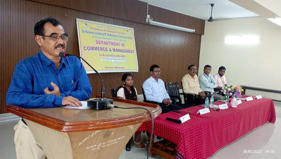 ಇಂದಿನ ಸ್ಪರ್ಧಾತ್ಮಕ ಜೀವನಕ್ಕೆ ಅಗತ್ಯವಿರುವ ಜ್ಞಾನ, ಕೌಶಲ್ಯ ಮತ್ತು ಮನೋಭಾವಗಳನ್ನು ವಿದ್ಯಾರ್ಥಿ ದೆಸೆಯಲ್ಲಿಯೇ ಕಲಿತುಕೊಳ್ಳಬೇಕು. ಕಂಪ್ಯೂಟರ್ ಮತ್ತು ಅಂತರ್ಜಾಲಗಳಲ್ಲಾದ ಅಪಾರ ಬದಲಾವಣೆ ವ್ಯವಹಾರ ಕ್ಷೇತ್ರದಲ್ಲಿ ಸ್ಥಿತ್ಯಂತರಗಳನ್ನು ಸೃಷ್ಟಿಸಿದೆ. ವಾಣಿಜ್ಯ ಮತ್ತು ನಿರ್ವಹಣಾ ಕ್ಷೇತ್ರದಲ್ಲಿ ಅಪಾರವಾದ ಉದ್ಯೋಗಾವಕಾಶಗಳಿದ್ದು ಅಗತ್ಯ ಕೌಶಲ್ಯಗಳನ್ನು ರೂಢಿಸಿಕೊಂಡಲ್ಲಿ ಭವಿಷ್ಯ ಉಜ್ವಲವಾಗುತ್ತಿದೆ ಎಂದು ಬಸ್ರೂರು ಶ್ರೀ ಶಾರದಾ ಕಾಲೇಜಿನ ವಿಶ್ರಾಂತ ಪ್ರಾಂಶುಪಾಲರಾದ ಪ್ರೊ ರಾಧಾಕೃಷ್ಣ ಶೆಟ್ಟಿ ಹೇಳಿದರು. ಅವರು ಸರಕಾರಿ ಪ್ರಥಮ ದರ್ಜೆ ಕಾಲೇಜು ಮತ್ತು ಸ್ನಾತಕೋತ್ತರ ಕೇಂದ್ರ ಕೋಟೇಶ್ವರದ ವಾಣಿಜ್ಯ ಮತ್ತು ನಿರ್ವಹಣಾ ಸಂಘವನ್ನು ಉದ್ಘಾಟಿಸಿ ವಿದ್ಯಾರ್ಥಿಗಳನ್ನು ಉದ್ದೇಶಿಸಿ ಮಾತನಾಡುತ್ತಿದ್ದರು. ಕಾರ್ಯಕ್ರಮದ ಅಧ್ಯಕ್ಷತೆ ವಹಿಸಿದ ಕಾಲೇಜಿನ ಪ್ರಭಾರ ಪ್ರಾಂಶುಪಾಲ ಶ್ರೀ ರಾಮರಾಯ ಆಚಾರ್ಯ ವಿದ್ಯಾರ್ಥಿಗಳಿಗೆ ಉನ್ನತ ಶಿಕ್ಷಣ ಮತ್ತು ವಾಣಿಜ್ಯ ಶಿಕ್ಷಣದ ಮಹತ್ವ ವಿವರಿಸಿದರು. ಐಕ್ಯೂಎಸಿ ಸಂಚಾಲಕ ಶ್ರೀ ನಾಗರಾಜ ಯು ಉಪಸ್ಥಿತರಿದ್ದರು. ವಾಣಿಜ್ಯ ವಿಭಾಗ ಮುಖ್ಯಸ್ಥ ಡಾ. ಶೇಖರ್ ಬಿ ಪ್ರಾಸ್ತಾವಿಕ ಮಾತುಗಳೊಂದಿಗೆ ಸ್ವಾಗತಿಸಿದರು. ವಿದ್ಯಾರ್ಥಿನಿಯರಾದ ಜಾಹ್ನವಿ ಮತ್ತು ತಂಡ ಪ್ರಾರ್ಥಿಸಿ, ಸಹಾಯಕ ಪ್ರಾಧ್ಯಾಪಕ ಡಾ. ವೆಂಕಟರಾಮ ಭಟ್ ವಂದಿಸಿದರು.ಉಪನ್ಯಾಸಕಿ ವಸುಧಾ ಕಾರ್ಯಕ್ರಮ ನಿರ್ವಹಿಸಿದರು.