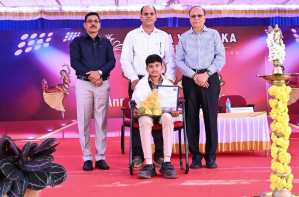 ಕಾರ್ಯಕ್ರಮದಲ್ಲಿ ರಾಜ್ಯ ಮಟ್ಟದ ಚಿತ್ರ ಕಲಾ ಸ್ಪರ್ದೆಯಲ್ಲಿ ಪ್ರಥಮ ಹಾಗೂ ವಿವಿಧ ಚಿತ್ರ ಕಲಾ ಸ್ಪರ್ಧೆಗಳಲ್ಲಿ ಬಹುಮಾನಗಳನ್ನು ಪಡೆದು ಸಾಧನೆ ಮಾಡಿದ ೮ ನೇ ತರಗತಿ ವಿದ್ಯಾರ್ಥಿ ಯಕ್ಷತ್ ಶೆಟ್ಟಿ ಇವರನ್ನು ಫಲ ಪುಷ್ಪ ಹಾಗೂ ಸ್ಮರಣಿಕೆಯನ್ನು ನೀಡಿ ಸನ್ಮಾನಿಸಲಾಯಿತು.ಕಾರ್ಯಕ್ರಮದ ಅಧ್ಯಕ್ಷತೆ ವಹಿಸಿದ್ದ ಶಾಲಾ ಮ್ಯಾನೇಜಿಂಗ್ ಡೈರೆಕ್ಟರ್ ಎಮ್. ಪ್ರಭಾಕರ ಶೆಟ್ಟಿಯವರು ಮಾತನಾಡಿ ಬಹುಮಾನ ಎನ್ನುವುದು ಮುಂದಿನ ಸಾಧನೆಗೆ ದಾರಿಯಾಗಬೇಕು ಹಾಗೂ ವಿದ್ಯಾರ್ಥಿಗಳು ಇನ್ನಷ್ಟು ಸಾಧನೆ ಮಾಡುವಂತಾಗಲಿ ಎಂದು ಶುಭ ಹಾರೈಸಿದರು.